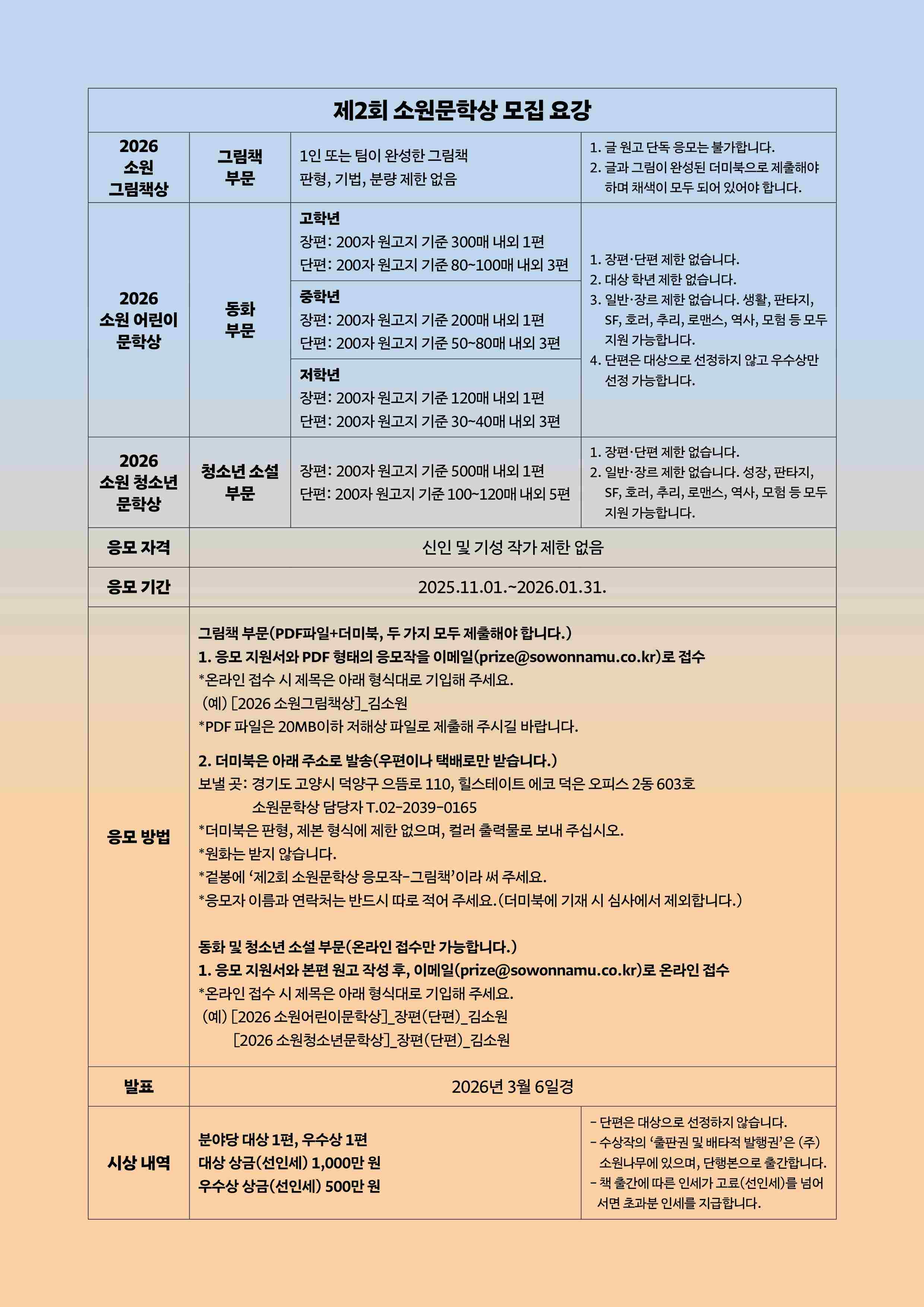 [공모전 안내] 2026 제2회 소원문학상