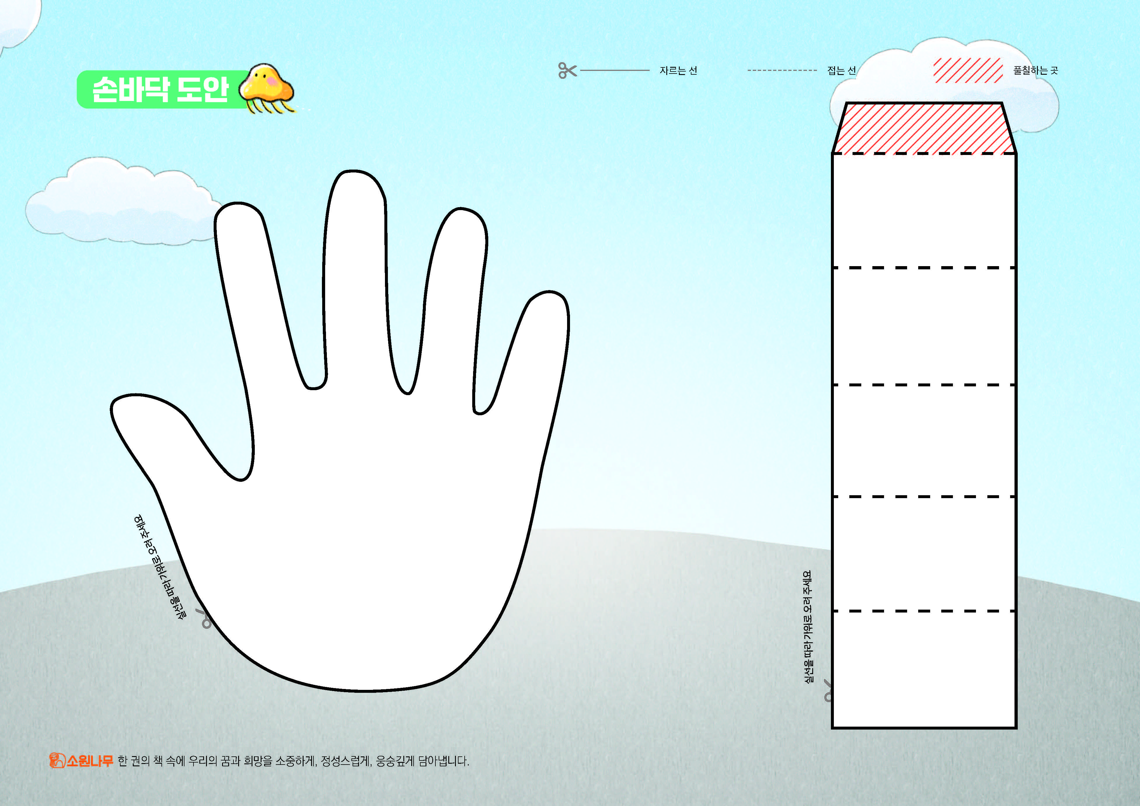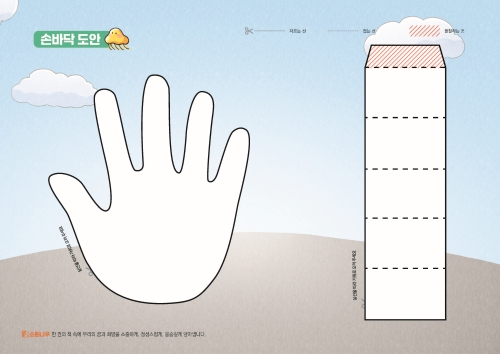 2. 네모 칸 속 점선을 따라 접어서 손바닥 지지대를 만듭니다.
